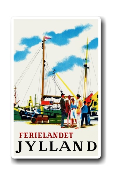 Magnet med udsnit af turistplakat fra 1956. Tegn..