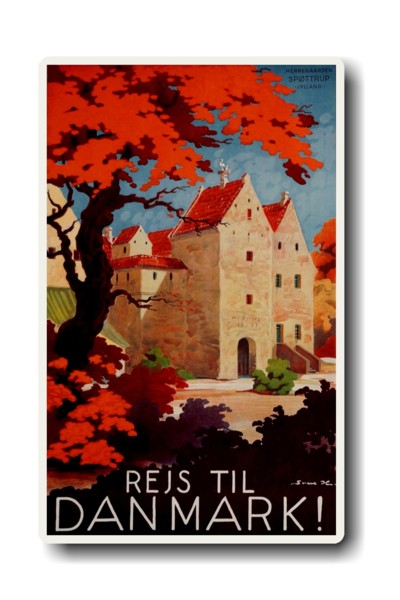 Magnet med turistplakat fra 1949. Tegnet af Henr..